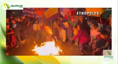 Esquerdistas colocam fogo em boneco de Trump na Av. Paulista