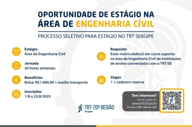 TRT-SE lança processo seletivo para estágio em Engenharia Civil