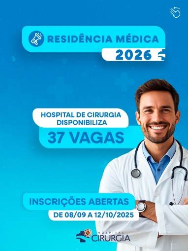 Hospital de Cirurgia abre inscrições para Residência Médica 2026 com 37 vagas em 10 especialidades