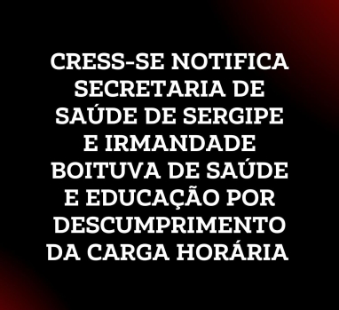 CRESS-SE notifica Secretaria de Saúde de Sergipe e Irmandade Boituva de Saúde e Educação por descumprimento da carga horária