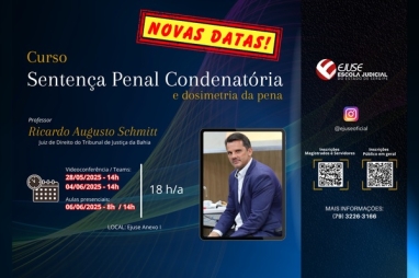 Ejuse informa alteração nas datas do curso ‘Sentença Penal Condenatória e Dosimetria da Pena’