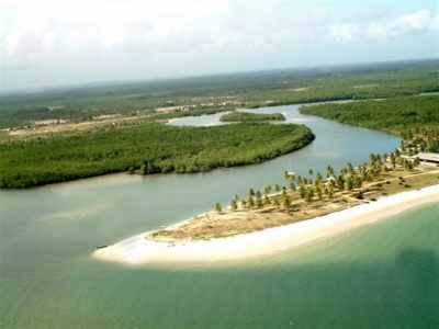 :: Passeio de Catamarã para conhecer Mangue Seco, Crasto, Terra Caída e Pontal, passando por manguezais densos do Rio Real, e chegando até as croas de areia da foz do rio em frente a Mangue Seco/BA;
