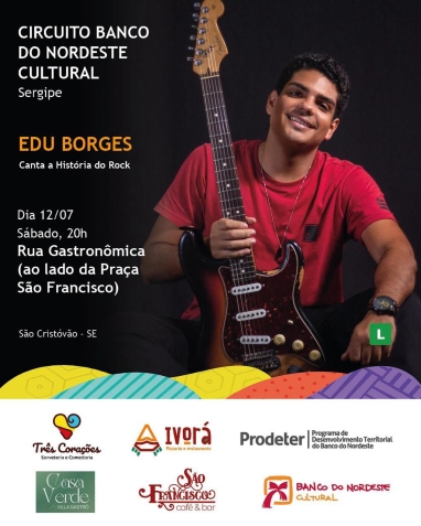 Edu Borges celebra o Dia Mundial do Rock com show especial em São Cristóvão pelo Circuito Banco do Nordeste Cultural