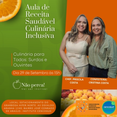 Instituto Cencosud terá aula de culinária saudável e inclusiva