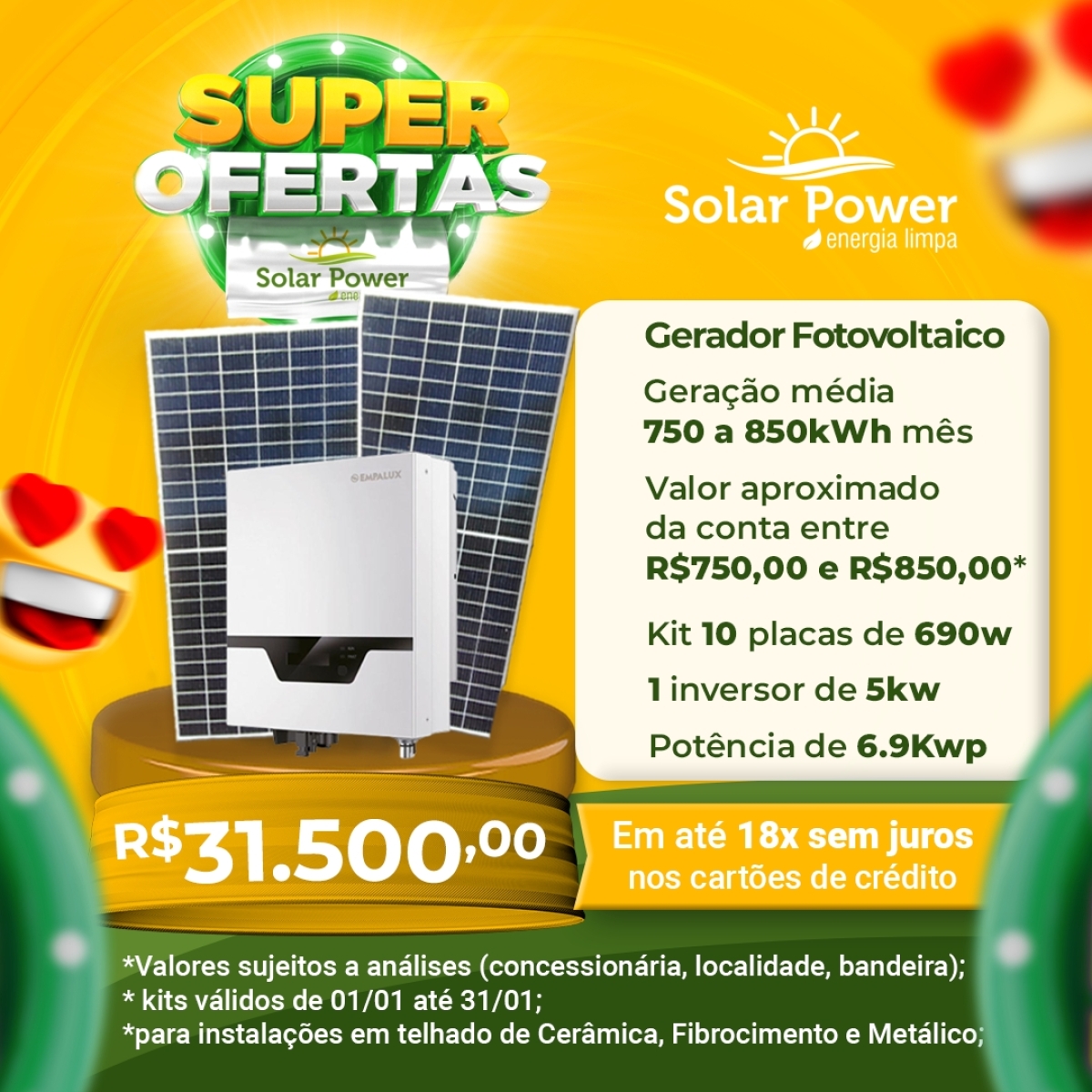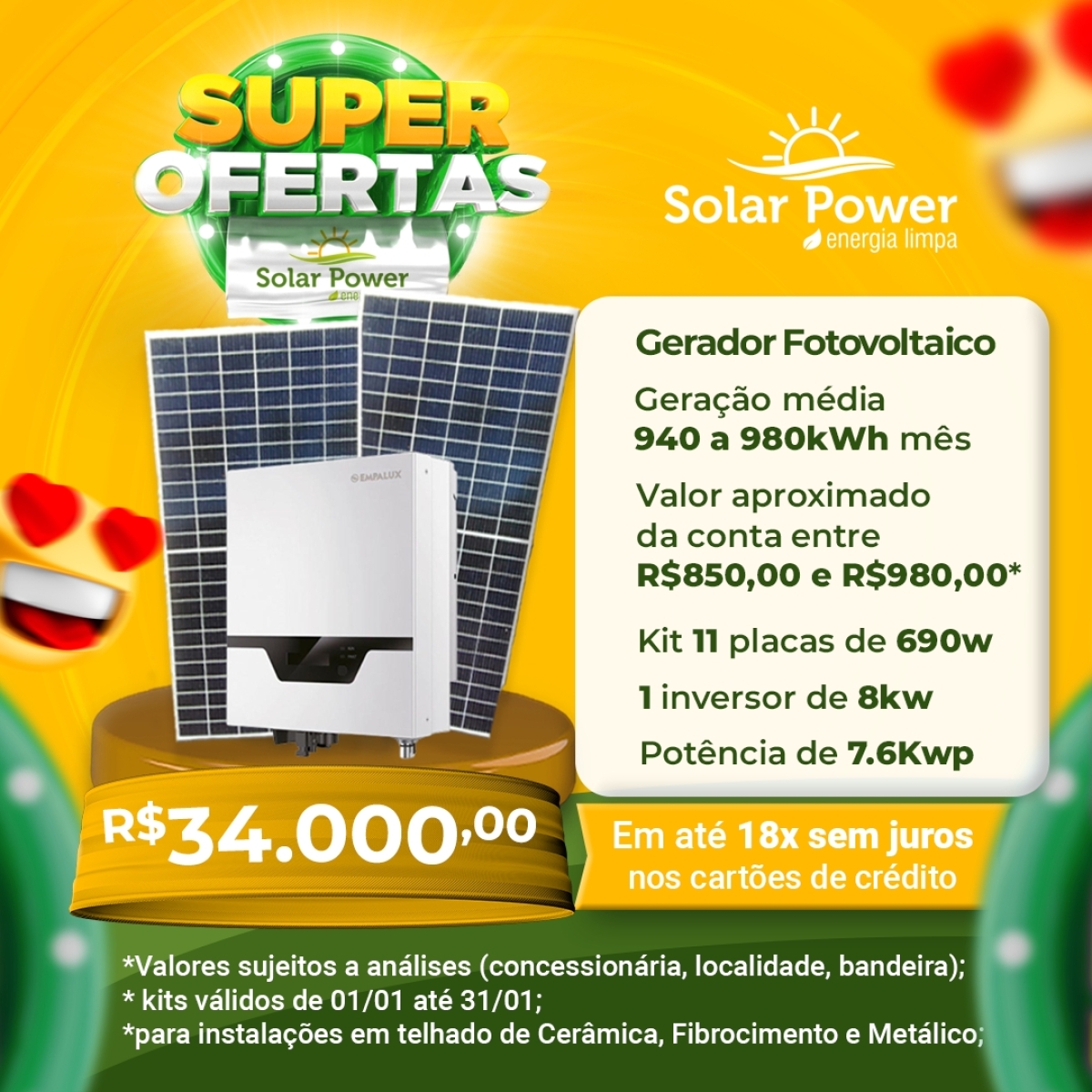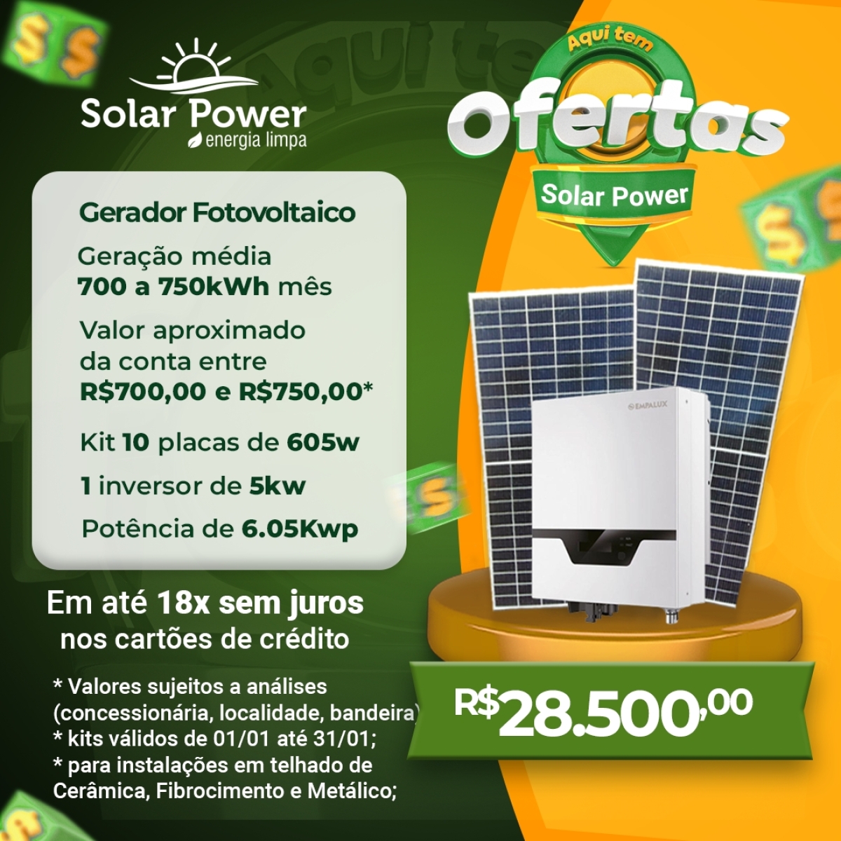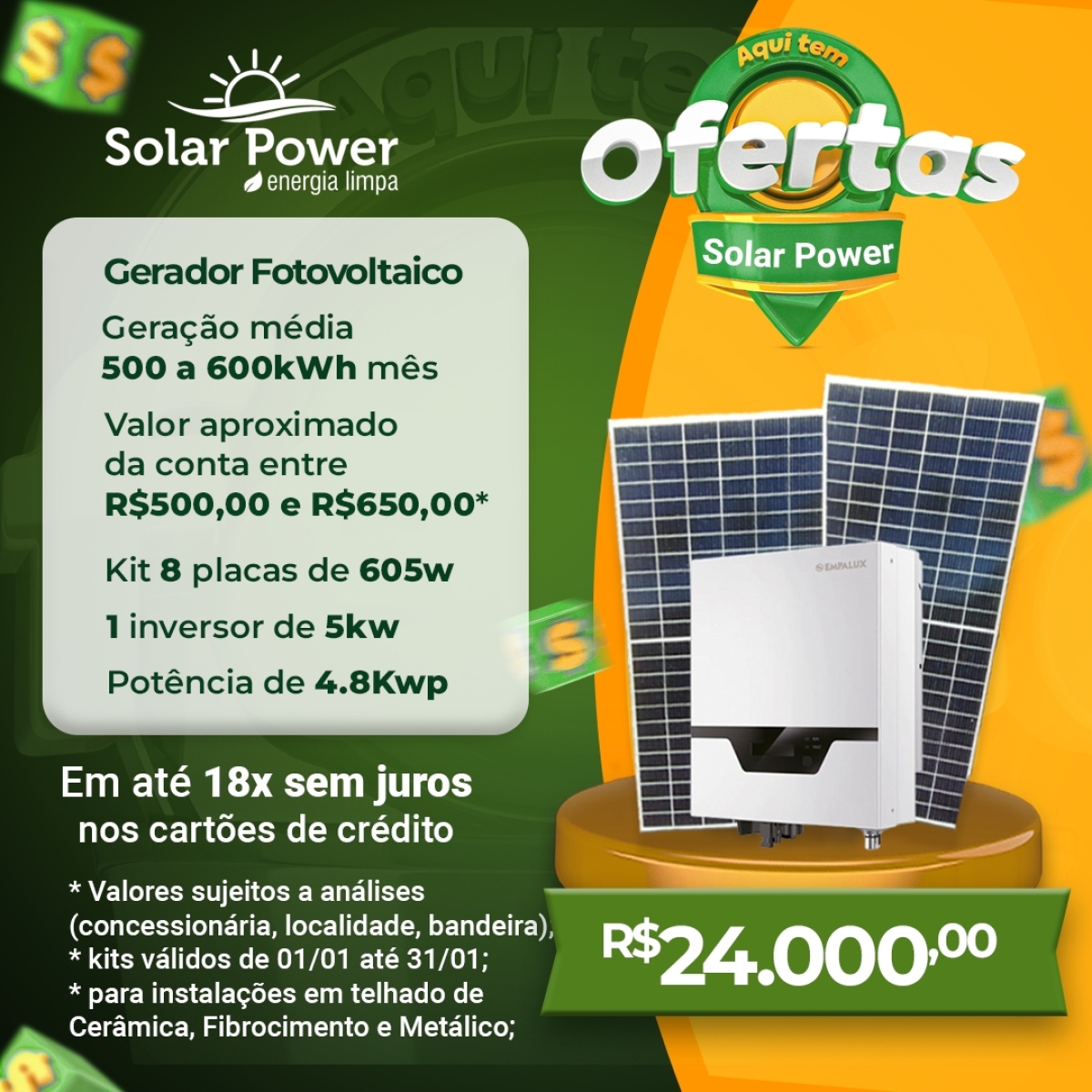 Solar Power - Energia Limpa em até 18x sem juros nos cartões de crédito; confira kWh e R$