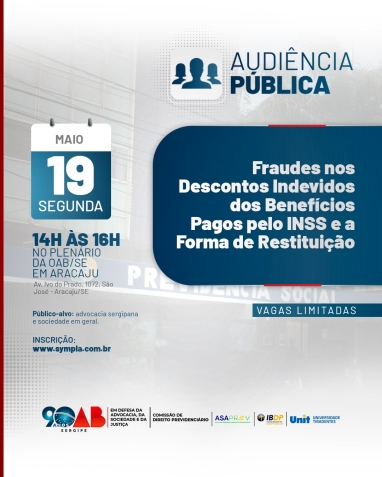 OAB/SE, Assaprev e IBDP realizam audiência pública para discutir fraudes nos descontos indevidos dos benefícios do INSS